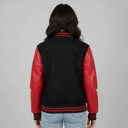 Black Wool Body and Red Cowhide leather Jacket