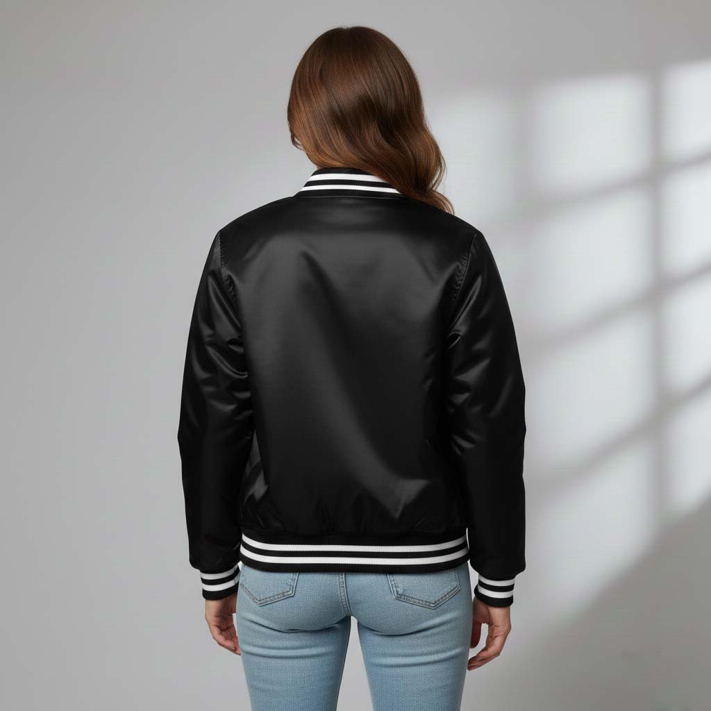 Black Satin Varsity Jacket