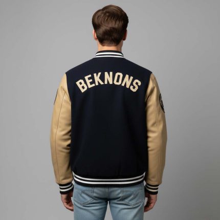 Navy and Tan Cotton Varsity Jacket